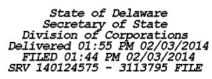 3. The effective date of this Certificate of Amendment is February 3, 2014.
