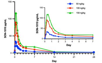 FHAB program advancement: SON-1010 has entered Phase 1b/2a clinical development to establish maximum tolerated dose (MTD) and to assess clinical benefit in platinum-resistant ovarian cancer (PROC). Regarding our first bifunctional candidate, SON-1210, two IND-enabling toxicology studies in NHPs have been successfully completed and the Company is prepared to initiate the regulatory authorization process, pending the outcome of any partnering activity.