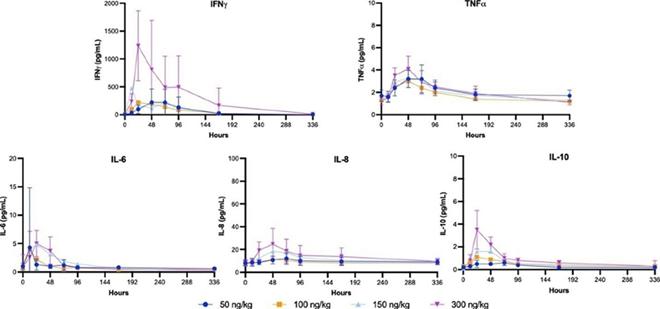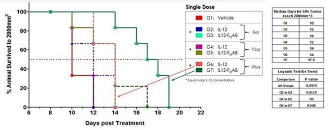 | ● | PK data reveals about 10-fold extended half-life for SON-1010 compared with rhIL-12 and suggests tumor targeting by the FHAB domain based on target-mediated drug disposition analysis. | |